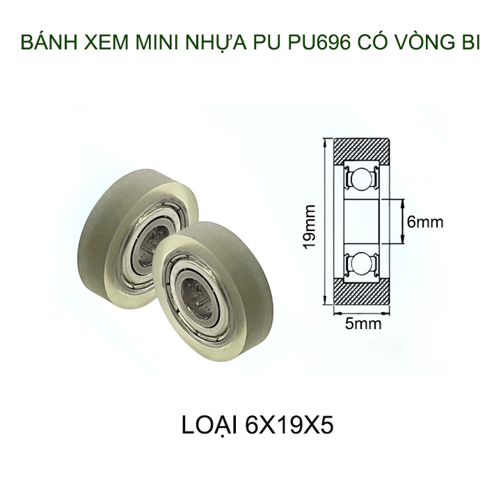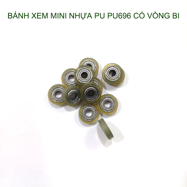 Bộ 05 Bánh xe nhựa PU mềm dẻo mini có vòng bi (bạc đạn), dùng cho cửa trượt-lùa đa năng, nhiều cỡ
