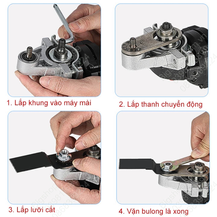 Bộ chuyển đổi máy cắt cầm tay thành máy cắt dao động đa năng được thiết kế thông minh, sáng tạo dùng gắn máy cắt cầm tay để tạo thành máy cắtdao động.