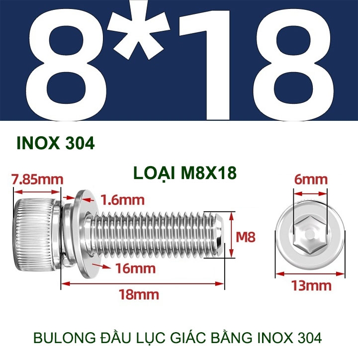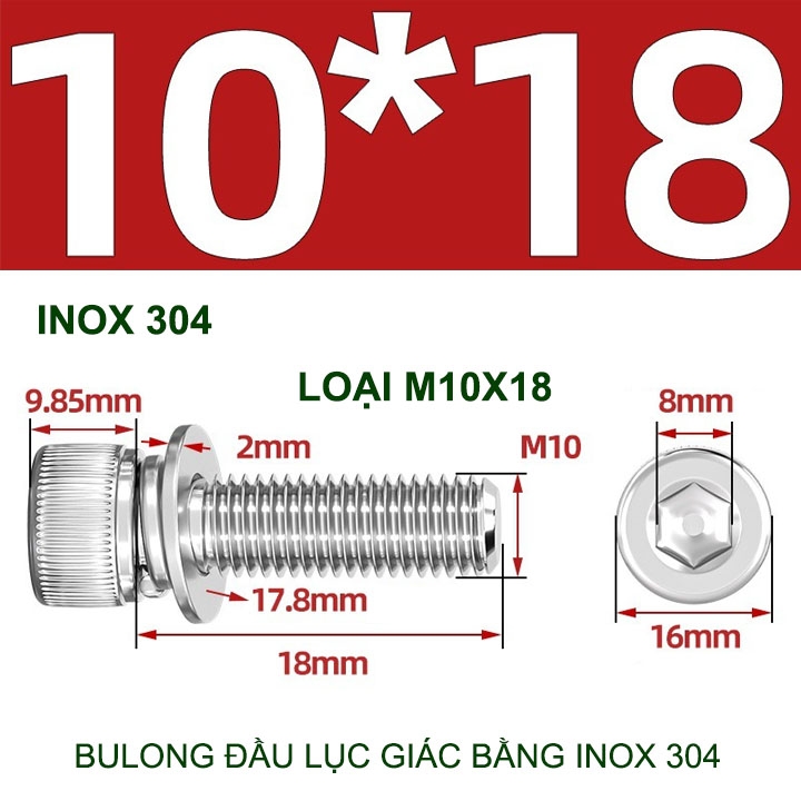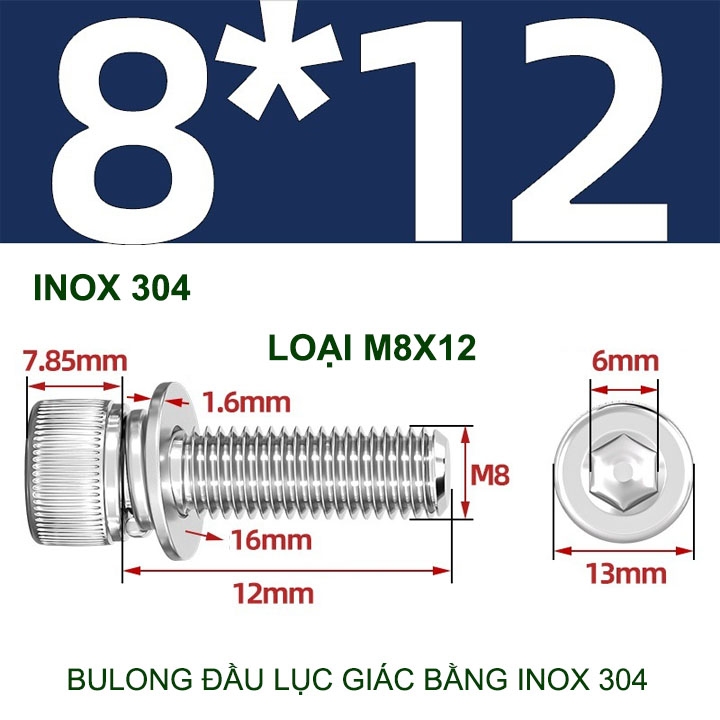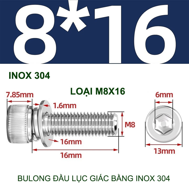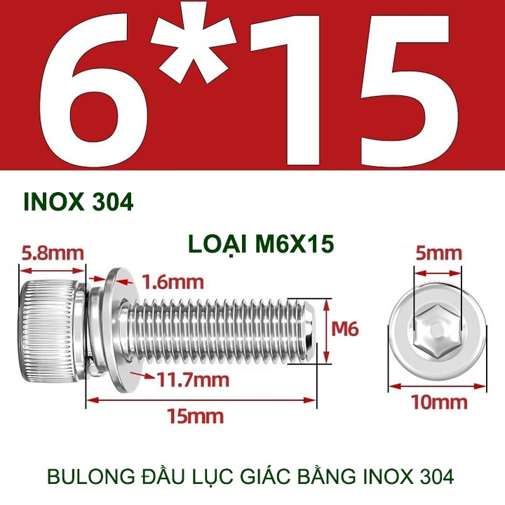 Bulong đầu lục giác chìm bằng inox 304 được thiết kế đơn giản, bóng đẹp với vật liệu inox 304 không bị gỉ, chịu được môi trường khắc nghiệt, chịu ăn mòn từ muối hay hóa chất