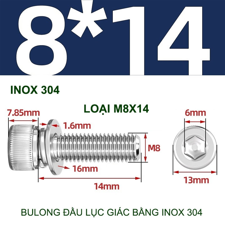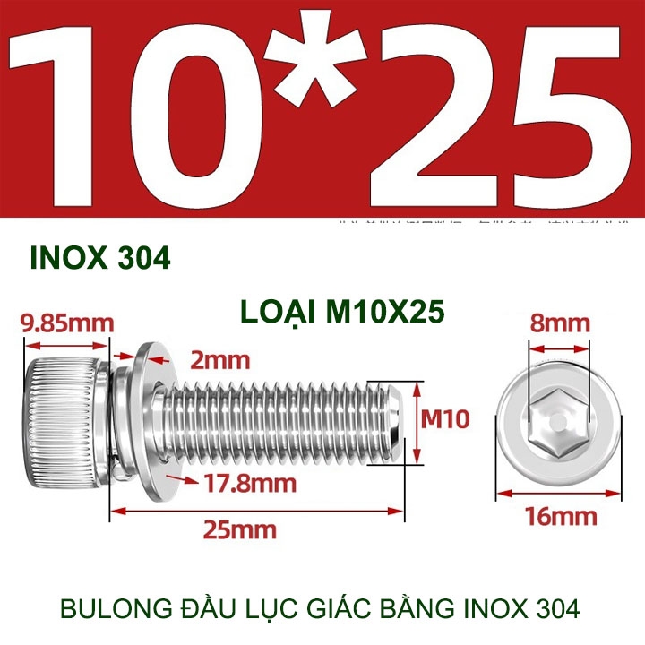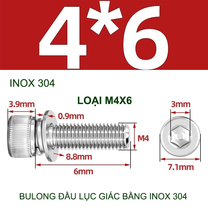 Kích cỡ: M4-M6-M8-M10 với chiều dài từ 6-25mm tùy chọn (xem chi tiết ảnh)