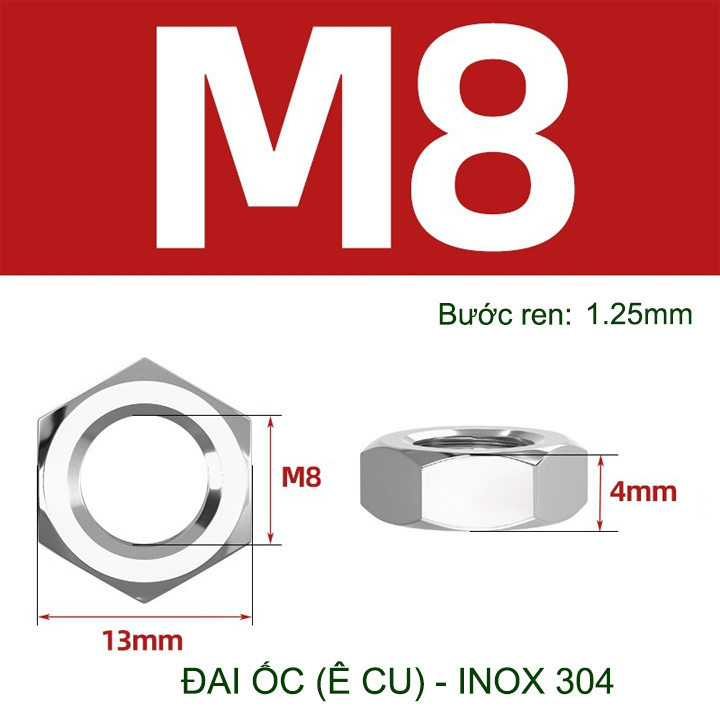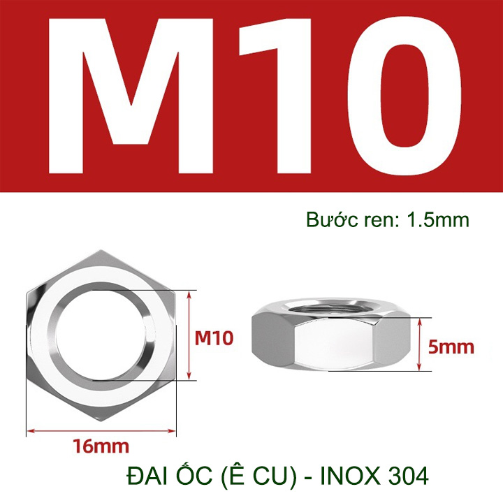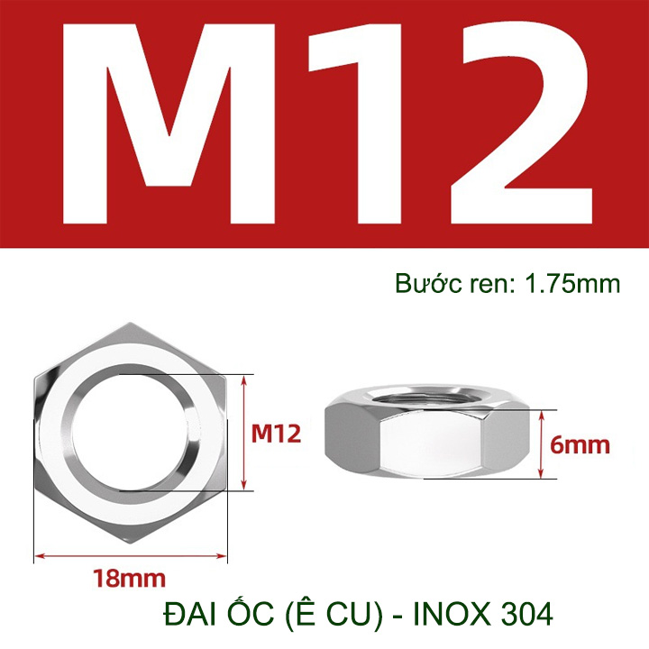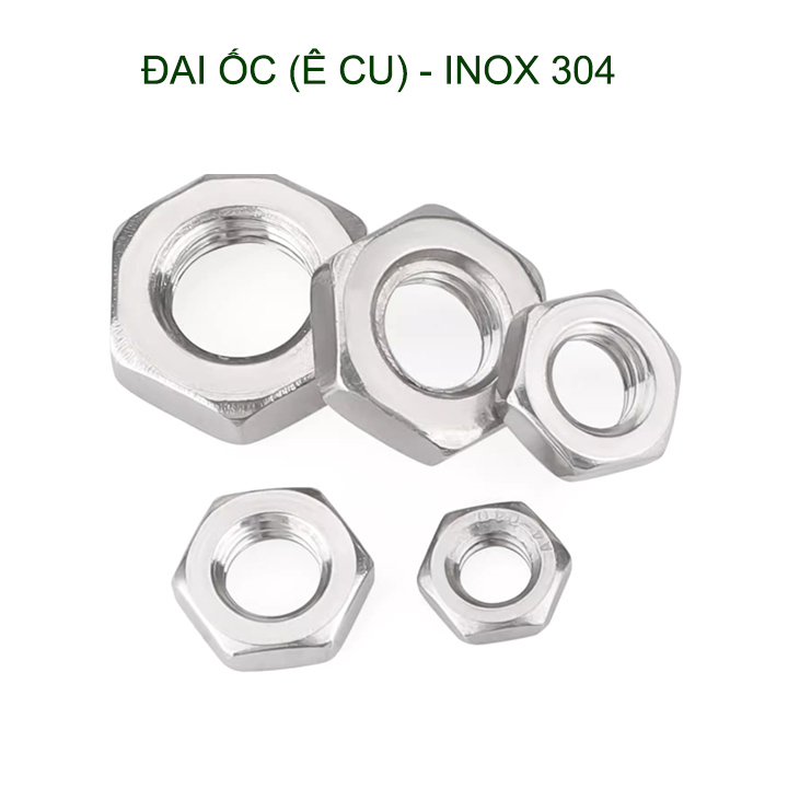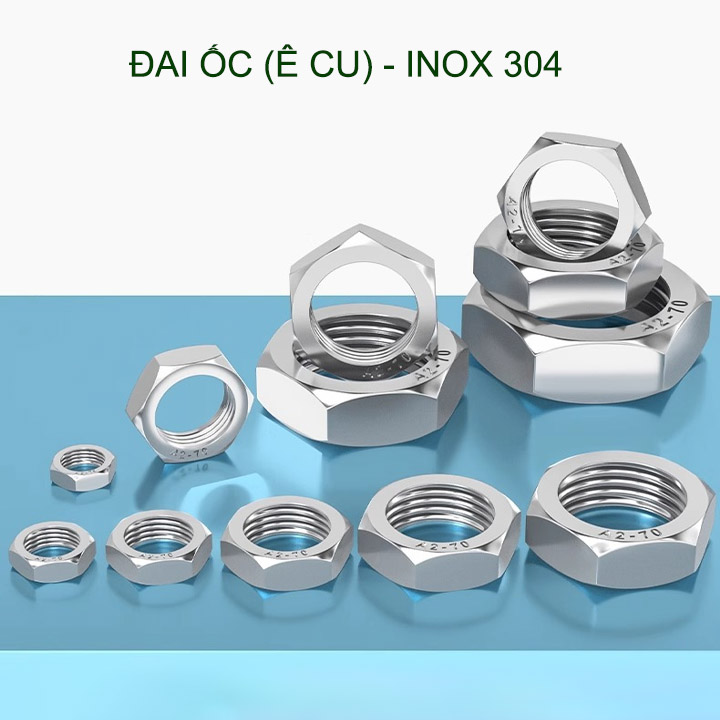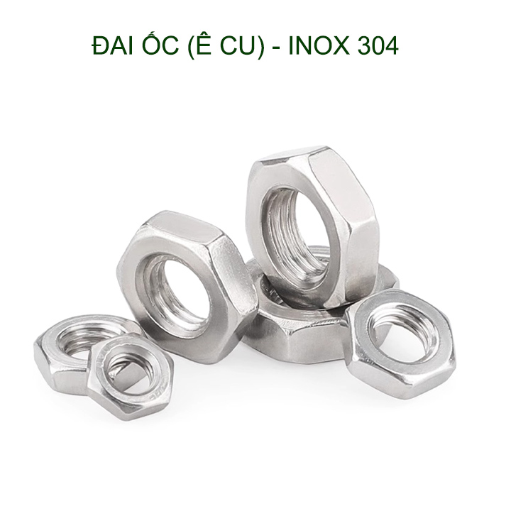 Đai ốc (Ê cu) mỏng bằng inox 304 loại M6-M8-M10-M12 tùy chọn (bộ 5-10 cái)