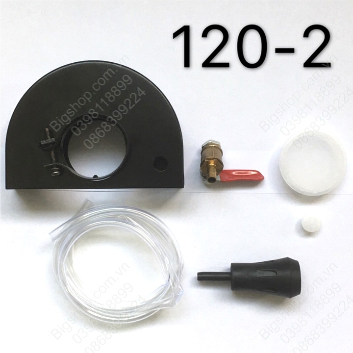 Sản phẩm có nhiều phụ kiện cho khách hàng lựa chọn: Hộp che bảo vệ máy cắt D120mm; Lưỡi cắt làm hợp kim, bề mặt phủ kim cương; Đầu chuyển đổi máy mài góc thành máy cắt rãnh tường loại trục 10mm; bơm nước máy cắt