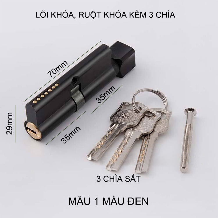 Lõi khóa cửa tay gạt, khóa 1 bên, vặn 1 bên kèm 3 chìa, có nhiều mẫu cho khách lựa chọn