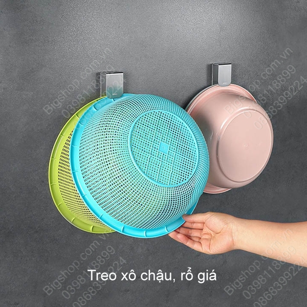 Móc treo chậu, rổ giá đa năng nhà tắm, nhà bếp được thiết kế thông minh, sáng tạo chuyên cho treo chậu thau rửa nhà tắm hoặc rổ giá nhà bếp giúp không gian, gọn gòng, ngăn nắp. Móc được làm bằng inox 304 gia công dập nên rất chắc chắn, bền.