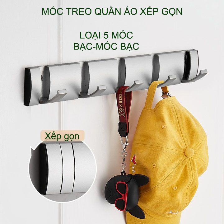 Thanh 5 móc treo quần áo gấp gọn thông minh được thiết kế đẹp với bề mặt uốn còn tinh xảo, thoogn minh sang trọng chắc chắn làm hài lòng các khách hàng khó tính nhất. Sản phẩm làm bằng hợp kim nhôm sơn tĩnh điện với nhiều màu sắc cho khách hàng lựa chọn phù hợp mọi không gian nhà mình